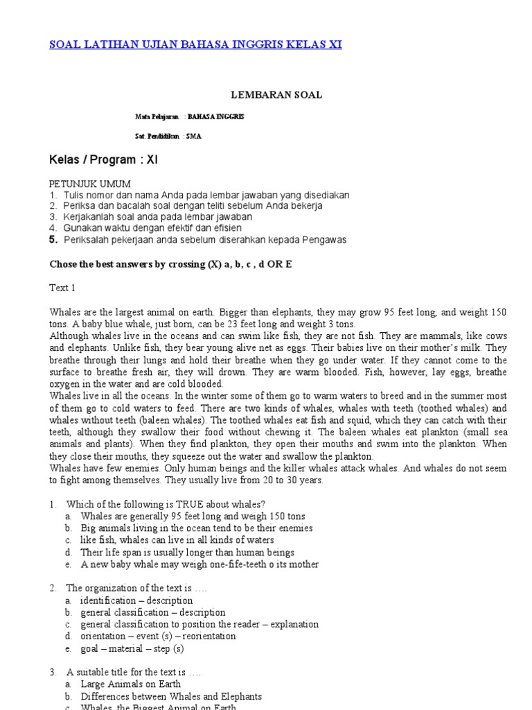 Soal Latihan Ujian Bahasa Inggris Kelas Xi Whales Tropical Cyclones